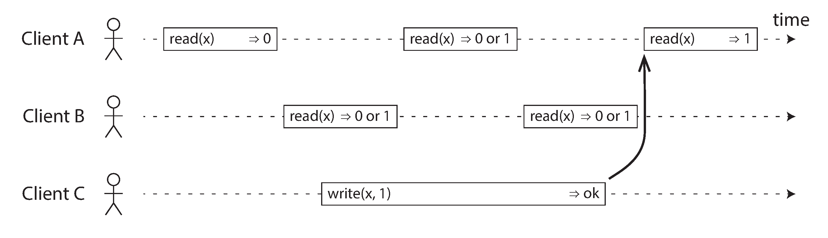 - 一个挑战是"强一致性"相当模糊,因此我们将制定一个更精确的定义,明确我们想要实现什么:线性一致性。