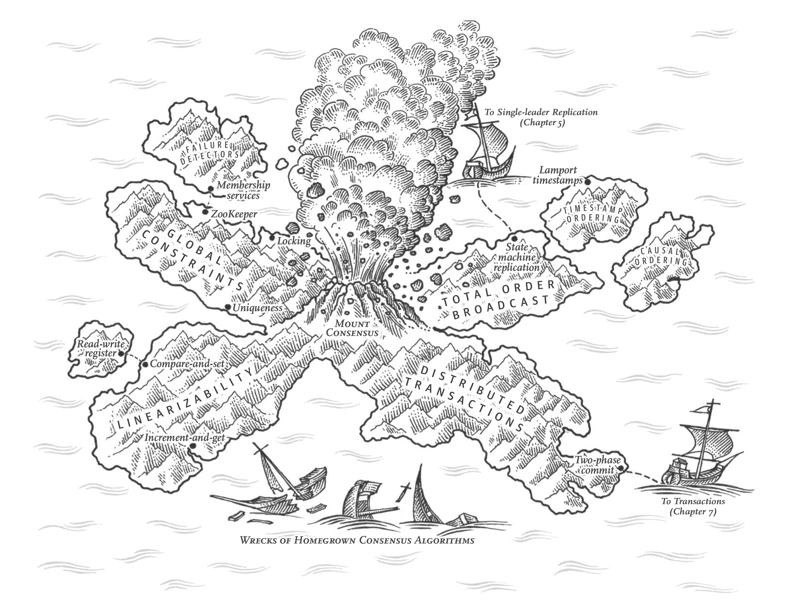本章只会触及表面:我们将坚持非正式的直觉,避免算法细节、形式化模型和证明。如果你想在共识系统和类似基础设施上进行认真的工作,你需要更深入地研究理论,才有机会让你的系统稳健。与往常一样,本章中的文献参考提供了一些初步的指引。