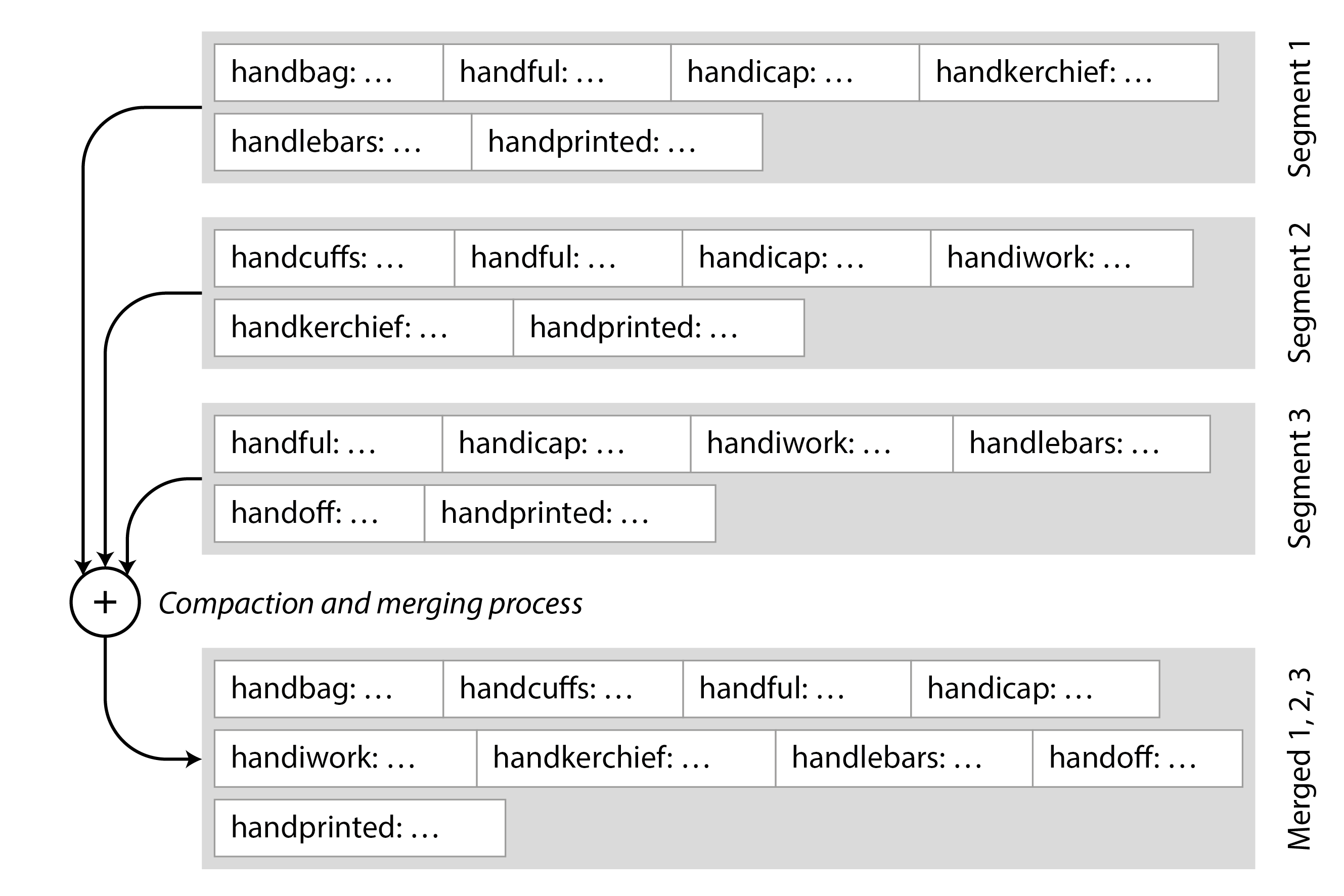 - 不时地在后台运行合并和压实过程,以合并段文件并丢弃被覆盖或删除的值。