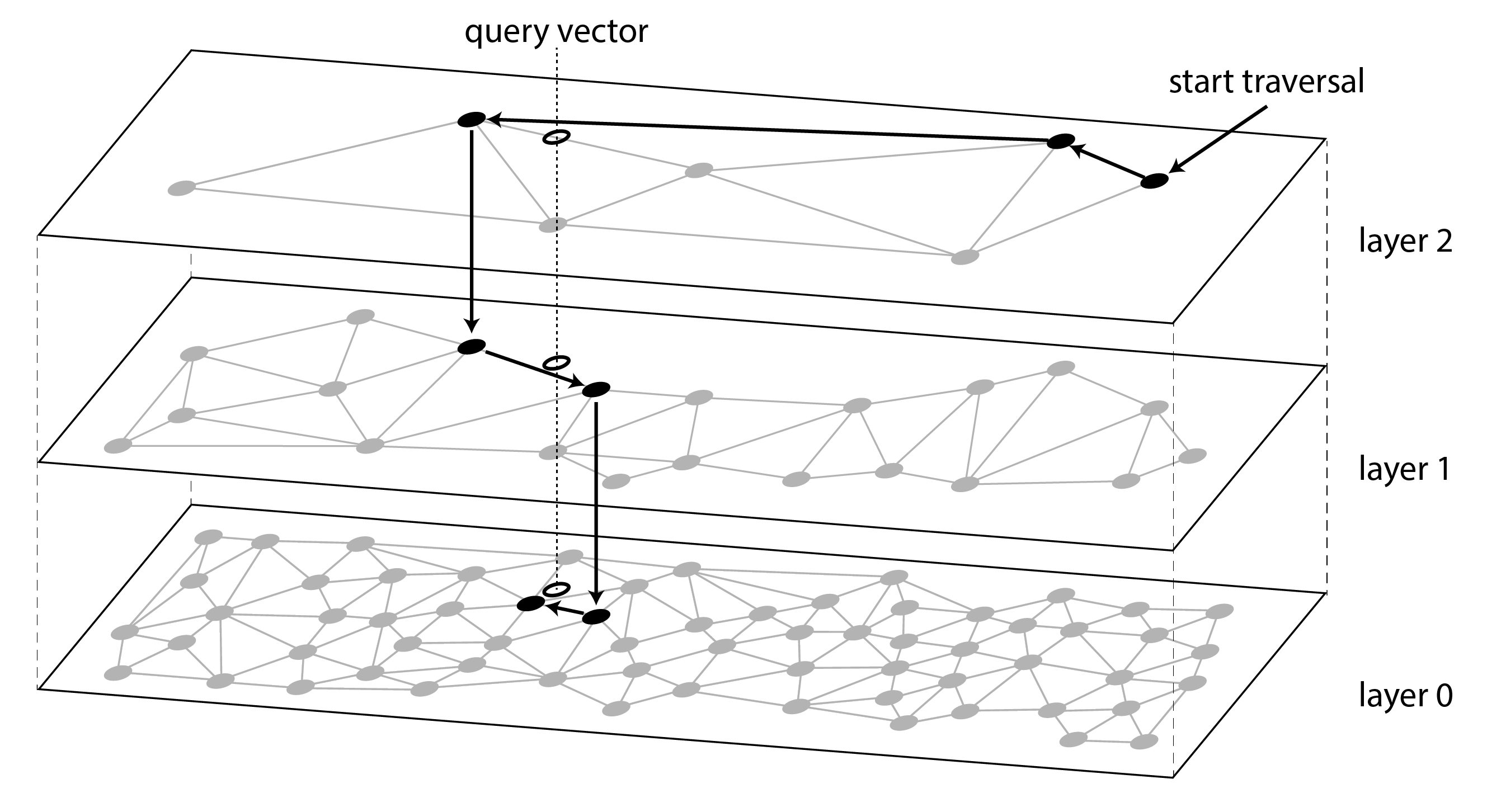 Yury A. Malkov and Dmitry A. Yashunin. Efficient and robust approximate nearest neighbor search using Hierarchical Navigable Small World graphs. IEEE Transactions on Pattern Analysis and Machine Intelligence, volume 42, issue 4, pages 824–836, April 2020. doi:10.1109/TPAMI.2018.2889473 ↩︎