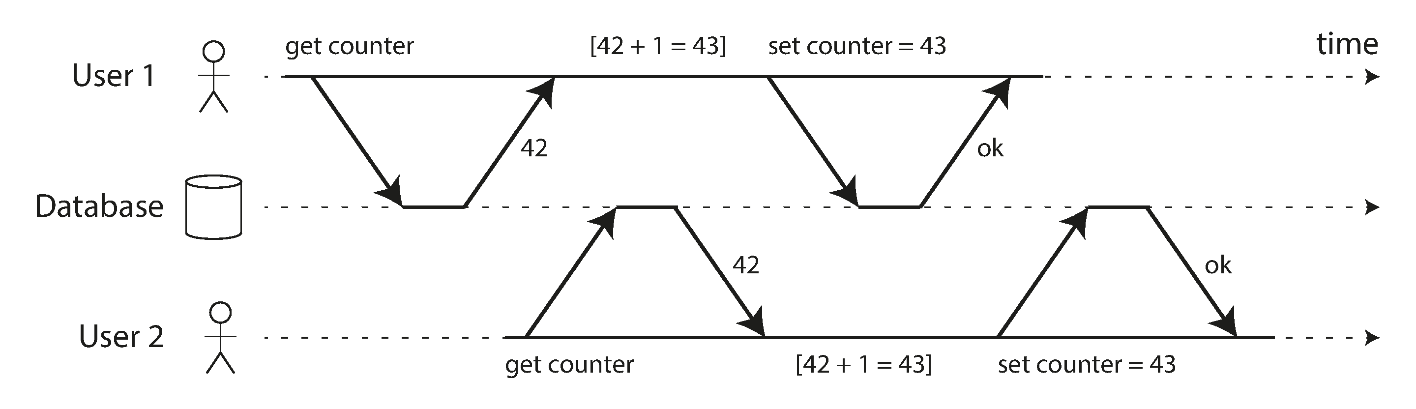 大多数数据库都会同时被多个客户端访问。如果它们读写数据库的不同部分,这没有问题,但如果它们访问相同的数据库记录,你可能会遇到并发问题(竞态条件)。