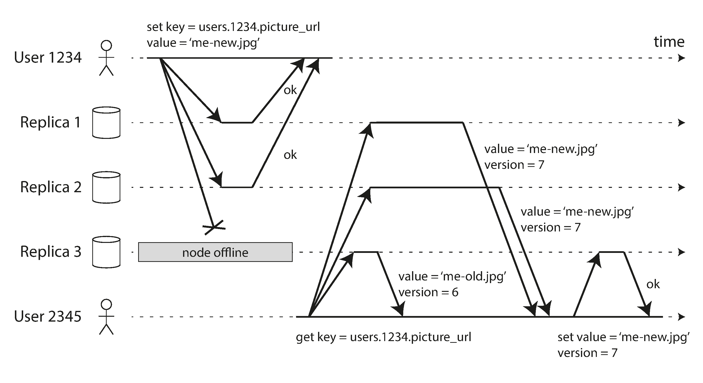 - 客戶端將每個寫入傳送到幾個節點,並從多個節點並行讀取,以檢測和糾正具有陳舊資料的節點。